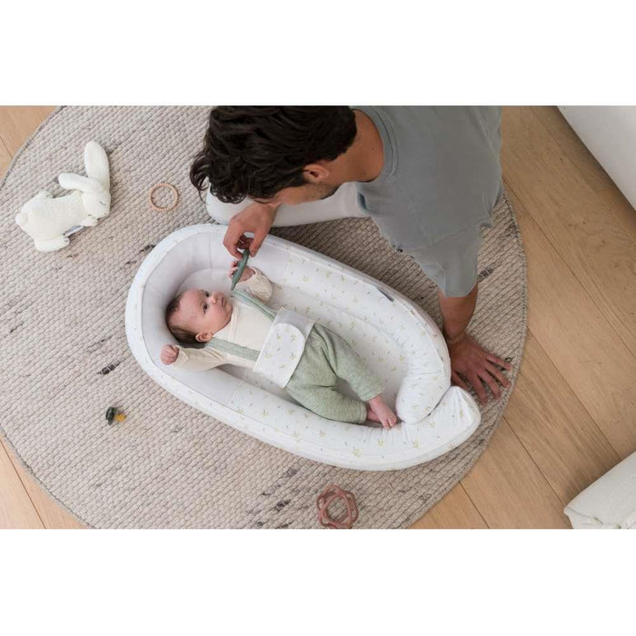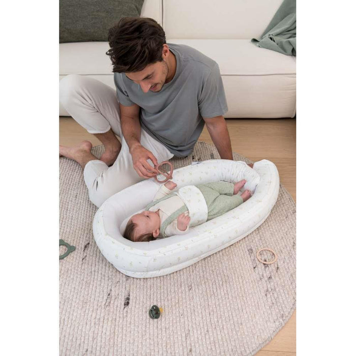 Para o ajudar nessa tarefa, a Doomoo criou o Cocoon, um ninho feito com uma malha respirável 3D e 100% segura, que dá ao seu bebé uma sensação de aconchego, facilitando a transição da barriga da mãe para o mundo. Fácil de transportar e ajustar ao tamanho do bebé, pode usá-lo para as pequenas sestas ou para delimitar uma área na cama de grades, tornando-a mais acolhedora e evitando que o seu filho se sinta perdido. O colchão respirável, de espuma de poliuretano, garante o bem estar e a colocação correta do bebé graças à sua rigidez. Com capas removíveis e laváveis, pode também usá-lo com uma proteção extra (a Coccon Pad, vendida em separado) que preserva o estofo original.