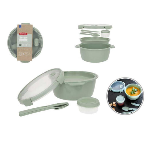 • Caixa Lancheira Redonda com Divisórias e Talheres Curver