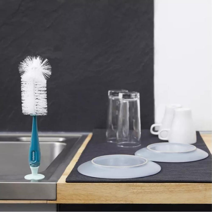 O escovilhão 2 em 1, para biberões e tetinas, irá ajudá-la a manter os essenciais da alimentação do seu filho sempre limpos. Um lado possui uma cabeça com escova de maiores dimensões com cerdas macias projetada para limpar sem esforço o interior do biberão. O outro lado, tem uma escova menor para limpeza precisa das tetinas e outros espaços mais apertados. A prática ventosa serve de base e mantém o escovilhão preso a várias superfícies.
