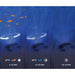 • São projetadas ondas e um cardume de peixes de cor laranja