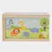 • Inclui: 29 peças de dominó ilustradas com animais selvagens (girafa, rinoceronte, tigre, leão, macaco, zebra e elefante) e 1 prática caixa de madeira com tampa para os guardar e transportar