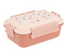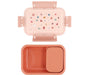 Ideal para levar pequenas refeições e/ou snacks para a escola ou para um passeio, a caixa lancheira "bento", da Tutete, com tampa hermética inclui um garfo e uma caixa mais pequena, amovível, no interior, para transportar vários alimentos, sem os misturar. Os seus 4 fechos são muito fáceis de abrir e fechar para os mais pequenos, para que possam utilizá-la sozinhos.