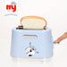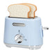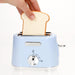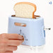 A torradeira para crianças tem uma roda de temporizador e uma alavanca para que as fatias saltem automaticamente quando termina a função.
