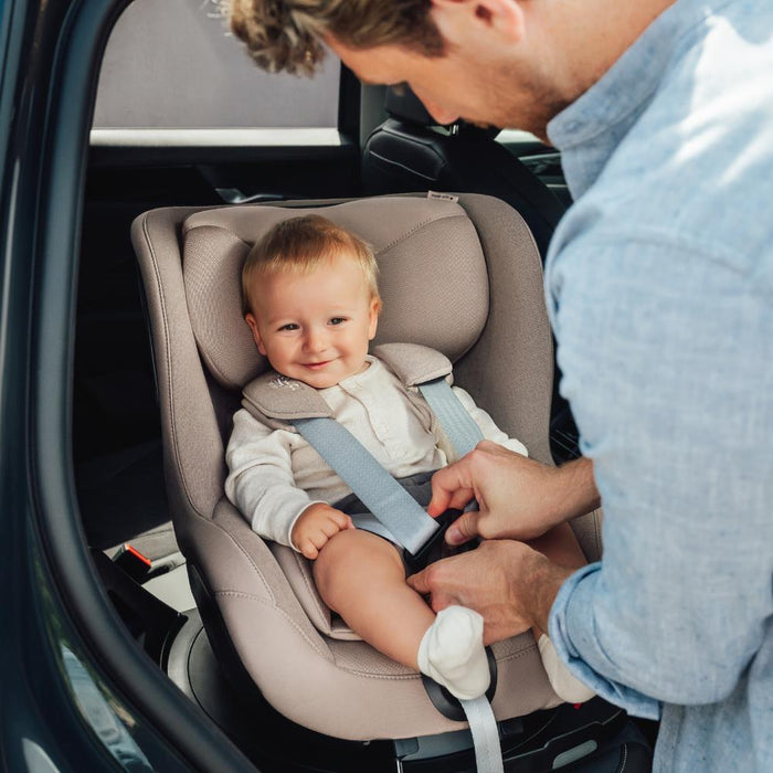 A DualFix Pro M i-Size conta com uma base integrada, instalada com sistema Isofix, que garante maior estabilidade e proporciona rotação a 360º para facilitar a colocação e a retirada da criança no veículo. O encosto de cabeça é ajustável em altura e, quer a favor como contra marcha, é possível reclinar a cadeira auto. O sistema SICT (Side Impact Cushion Technology), contra impactos laterais, integrado no interior absorve a energia em caso de colisão, protegendo o seu filho do impacto. A versão Style está ainda dotada de tecidos de malha respirável e um suave redutor (amovível) que garante o máximo conforto ao assento.