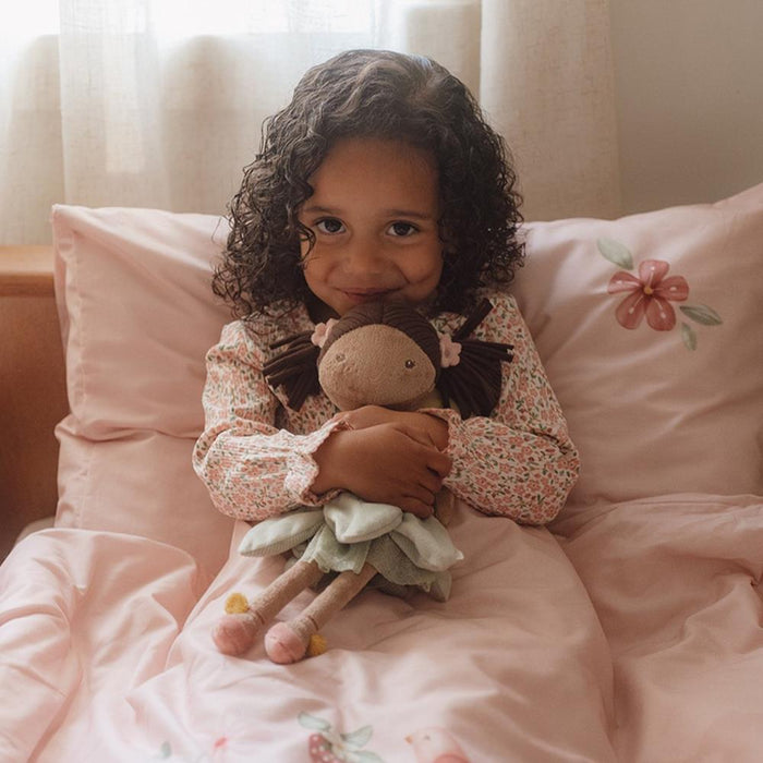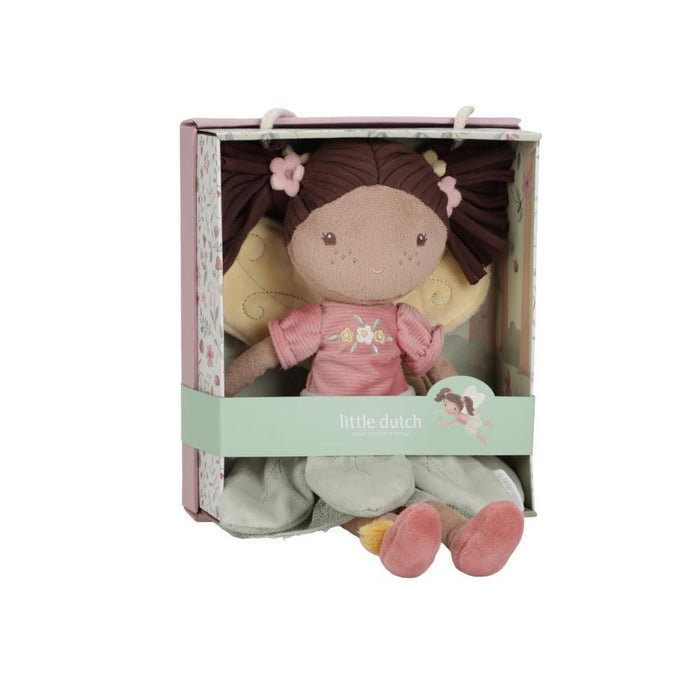 Conheça a Fada Evi, uma fada de peluche capaz de nos transportar para uma aventura no jardim de flores, entre flores coloridas e abelhas.