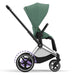 Carrinho Cybex Platinum e-Priam Chrome Black + Pack Tecidos Leaf Green
