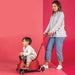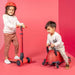 • 3 modos: ride-on com barra de apoio para os pais, útil para guiar e auxiliar os mais pequenos, Ride-on independente com armazenamento por baixo do assento e guiador ajustável; removendo o assento funciona como trotinete com um mecanismo intuitivo de inclinação para virar, rodas de LED, plataforma para os pés extra larga e reforçada