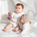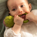 • 2 em 1: chocalho e mordedor em borracha 100% natural proveniente das árvores Hevea