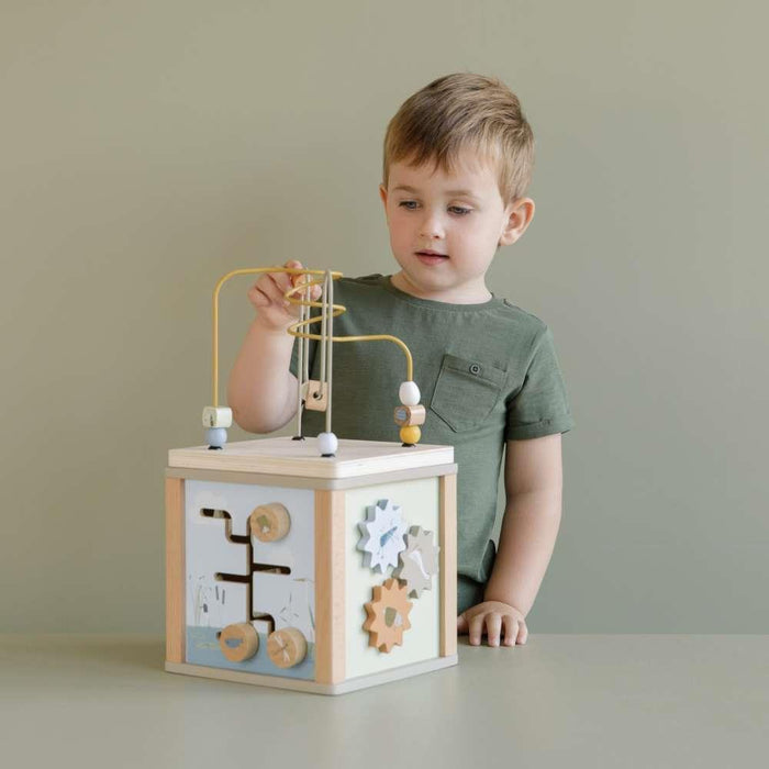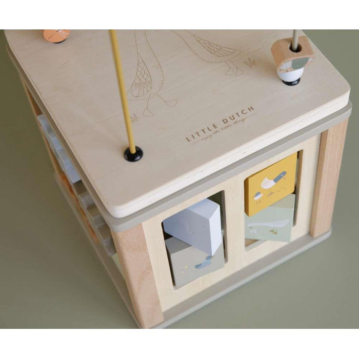 Este cubo de atividades oferece vários desafios àss crianças. Cada lado apresenta a personagem Little Goose e seus amigos, e oferece uma atividade educacional diferente, incluindo um classificador de formas, engrenagens giratórias, quebra-cabeças e uma divertida espiral de contas no topo. Indicado para desenvolver as habilidades motoras finas do seu filho e encorajar a sua criatividade.