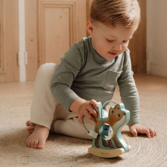 Os pequenos podem mover as peças em forma de folhas, pinhas e cogumelos, percorrendo o caminho pela superfície da raposa.