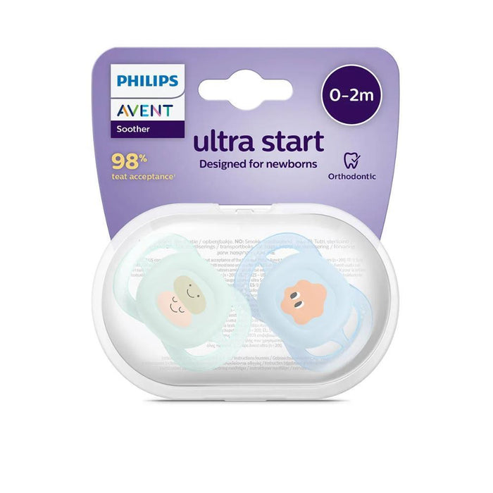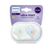 Philips Avent Ultra Start é uma chupeta leve, ortodôntica, que se adapta perfeitamente ao rosto pequeno do recém-nascido. O seu formato simétrico e estreito junto ao escudo, distribui uniformemente a pressão sobre a mandibula, dentes e gengivas, ajustando-se ao interior do palato único de cada bebé.