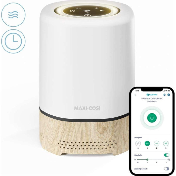 O purificador de ar 3 em 1 da Maxi-Cosi inclui uma filtragem de ar de elevado desempenho, uma luz noturna e sons suaves para criar uma atmosfera calmante para melhorar o sono do seu bebé, garantindo também que o ar ambiente se mantém limpo, tanto durante o dia como de noite. Inclui ainda um temporizador de sono que ajuda a criar rotinas avançadas e personalizadas, alinhadas com a rotina notura do seu bebé. Todas as funções podem ser controladas a partir de qualquer lugar com a aplicação Maxi-Cosi Connected Home.