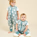 Este pijama (sem meias) foi projetado para ser usado sobre peças de roupa leves para manter o seu pequeno aquecido enquanto dorme, brinca, anda ou gatinha, tal qual um saco de dormir mas ainda mais versátil. O seu tecido de malha 100% algodão e enchimendo acolchoado oferece um toque macio e ajuda a manter o seu filho a uma temperatura confortável, durante toda a noite. De TOG 1.0 é adequado para usar durante as estações mais amenas do ano.