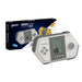 Consola de jogos vintage com 2 jogos (tetris e um space shot) com gráficos de poucos bits a imitar as famosas consolas de bolso da década de 90.