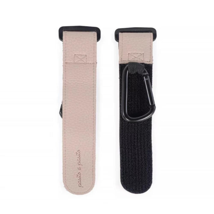 Conjunto de dois ganchos que se prendem a qualquer barra guiadora de carrinho de passeio e permitem pendurar vários objetos ou malas/mochilas de maternidade.