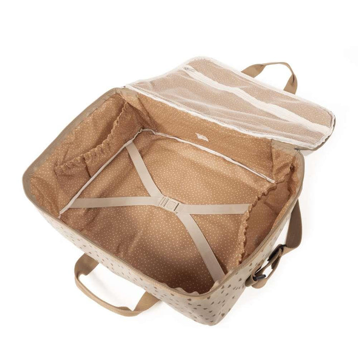 Esta espaçosa mala, de design retangular, foi pensada para transportar tudo o que precisa para si ou para o seu bebé, quer durante a vossa estadia na maternidade quer à posteriori. Com interior dotado de vários compartimentos que facilitam a organização da roupa do seu filho no caso de, por exemplo, irem de viagem. Pode transportá-la à mão ou ao ombro.