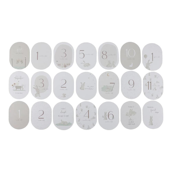 Desde o primeiro sorriso até os primeiros passos, acompanhe o crescimento do seu bebé e celebre marcos inesquecíveis com este conjunto de 21 cartões únicos.