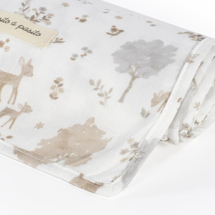 - Lençol superior/Musselina: 120 cm x 120 cm