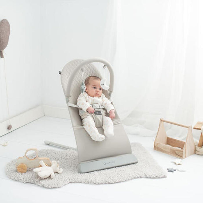 Espreguiçadeira leve e multifuncional, que torna a rotina diária com o bebé mais simples e confortável. Os movimentos do bebé permitem um movimento de balanço natural, que o acalma e relaxa, como se estivesse ao colo. As duas posições de reclinação permitem que o bebé relaxe e partilhe do convívio com a família. Possui também função de vibração, 8 melodias diferentes e um arco de brinquedos amovível, com dois peluches.