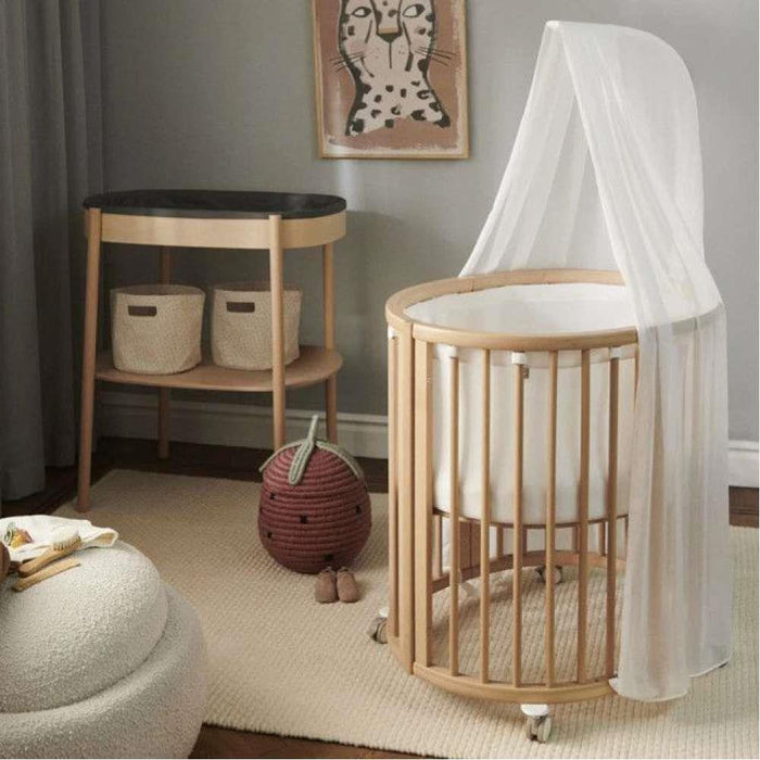 Dossel em tecido leve, transparente, ajuda a criar um ambiente de sono aconchegante no berço Sleepi V3.