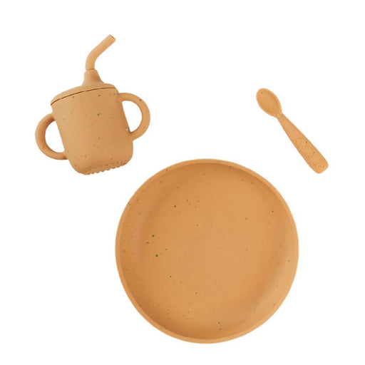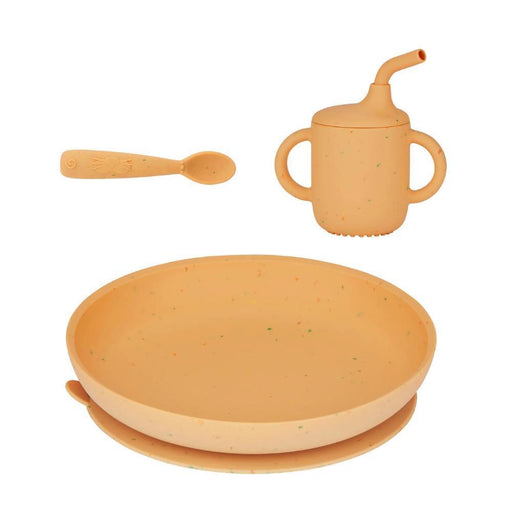 Conjunto indispensável para a introdução alimentar composto por um prato com ventosa, um copo com tampa e palhinha e uma colher. Em silicone de qua...