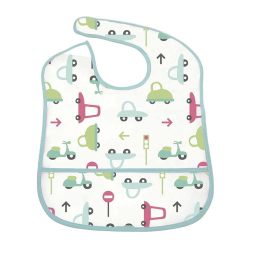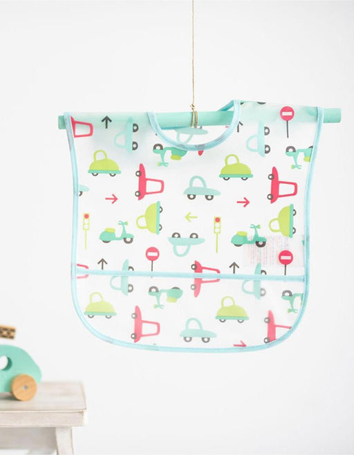 Water-resistant vinyl bib, ideal for your baby's meals. With a pocket for crumbs, it is easy to clean with a damp cloth.