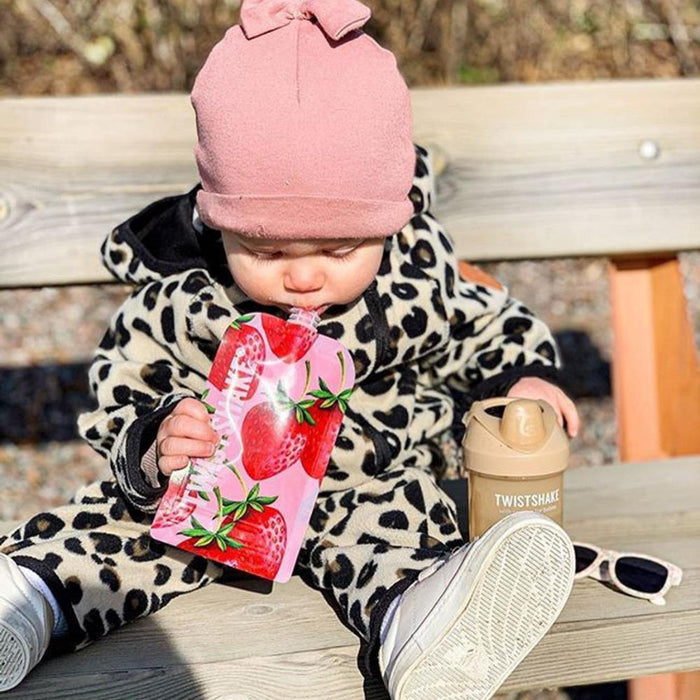 Twistshake Squeeze bags are a sustainable option, ideal for taking to school or on an outing. You can fill the reusable bag with homemade purees or smoothies to offer your child at any time.