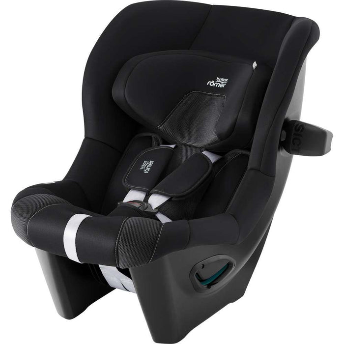 Approved according to the R129 standard and with the Swedish Plus Test seal, the Britax Römer Max-Safe Pro car seat offers rear-facing protection from 61 cm to 125 cm in height, approximately from 3 months to around 7 years, thanks to the included baby reducer, a divider that adds extra legroom, the SICT side impact absorption system and the V-shaped headrest. In addition, the ClickTight system for adjusting the car seat belt and the self-retracting lower straps make installation simpler and more intuitive.