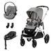 O PACK inclui: Pack Cybex Gazelle S SLV Stone Grey + Cloud G i-Size Plus Stone Grey 40-87 cm + Adaptadores Gazelle S para cadeira auto + Base Isofix G i-Size