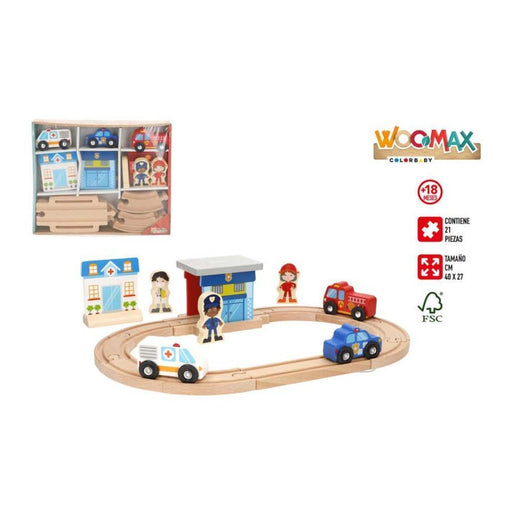• Pista Veículos de Emergência Woomax em Madeira 21 Peças