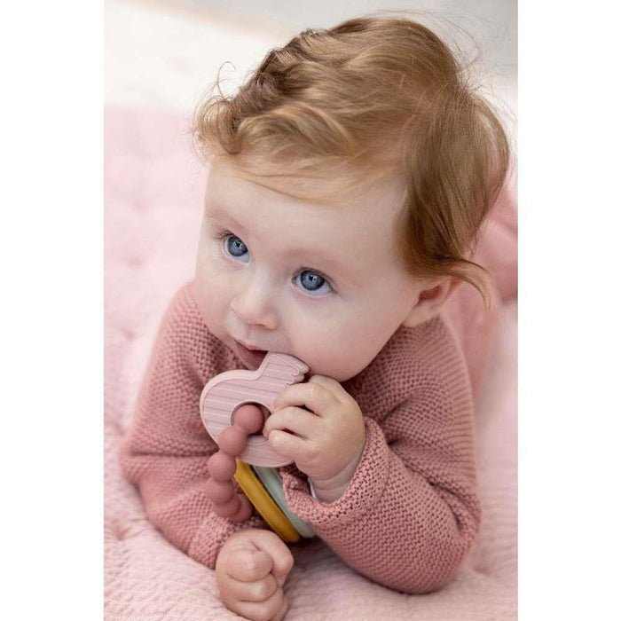 The Silicone Teether relieves pain, soothes gums and stimulates the appearance of new teeth. Its shape is easy for little hands to hold and for babies to put in their mouths.