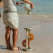 This is a beach toy that encourages discovery: at the top there is a funnel through which water or sand enters and, when it falls, makes the windmills turn.
