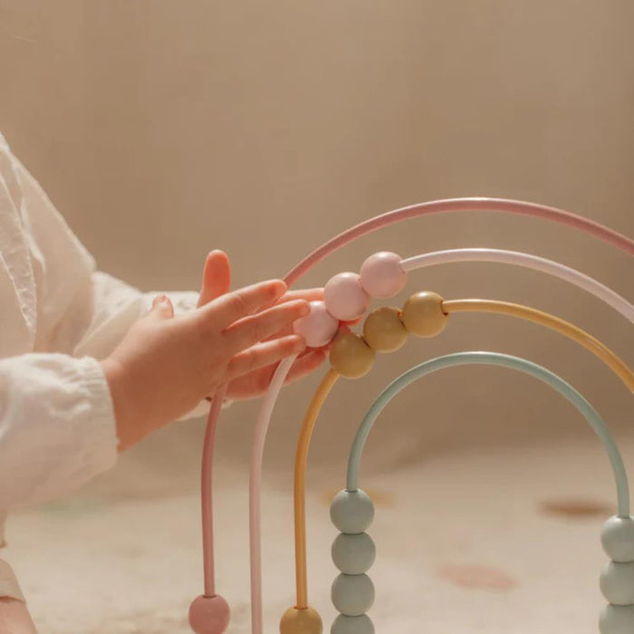 The Little Dutch Fairy Garden Rainbow Abacus is a perfect educational toy to stimulate your baby's fine motor and cognitive skills, while introducing counting concepts in a fun and visual way.