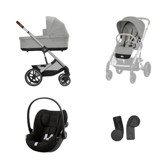 • Pack Cybex Balios S Lux BLK Moon Black + Alcofa S Lux Moon Black + Adaptadores + Cloud G i-Size Fog Grey 40-87cm