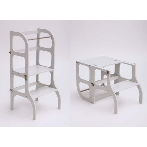 • White Wood Step´n´Sit Learning Tower and Table with Silver