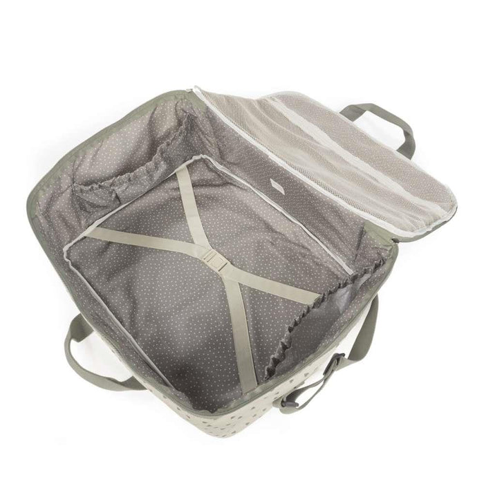 This spacious, rectangular-designed suitcase is designed to carry everything you or your baby need, whether during your stay at the hospital or afterwards. Its interior has several compartments that make it easy to organize your child's clothes if you're going on a trip, for example. You can carry it by hand or over your shoulder.