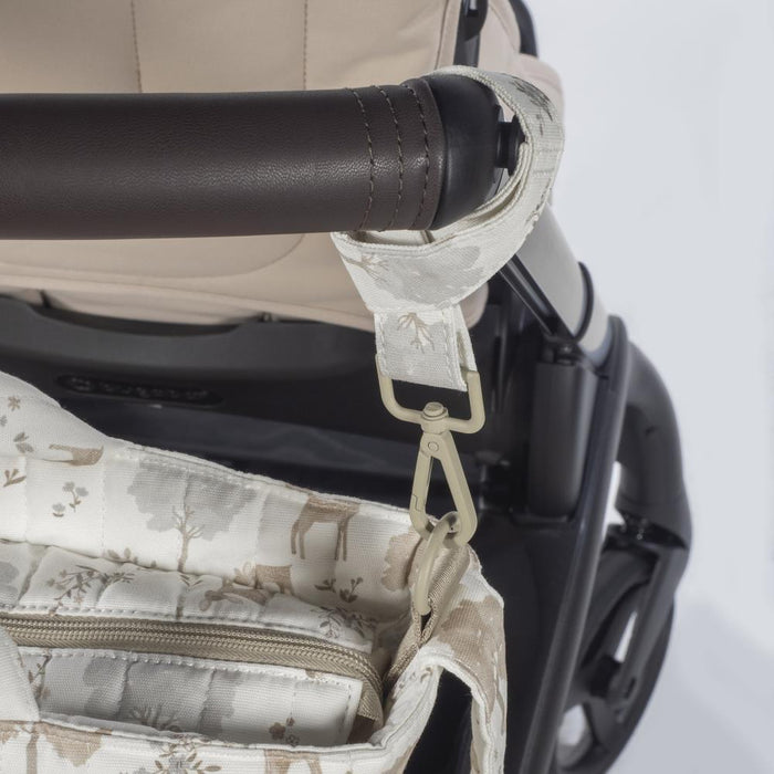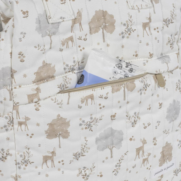 De design moderno e urbano, a mochila acolchoada Pasito a Pasito, da coleção Nara, facilita o transporte das suas coisas e do seu bebé durante os vossos passeios. Pode levá-la confortavelmente aos ombros, à mão, ou presa no carrinho com as alças ajustáveis, compatíveis com a maioria dos modelos do mercado. Possui bolsos no interior e no exterior para manter tudo ao seu alcance e organizado.