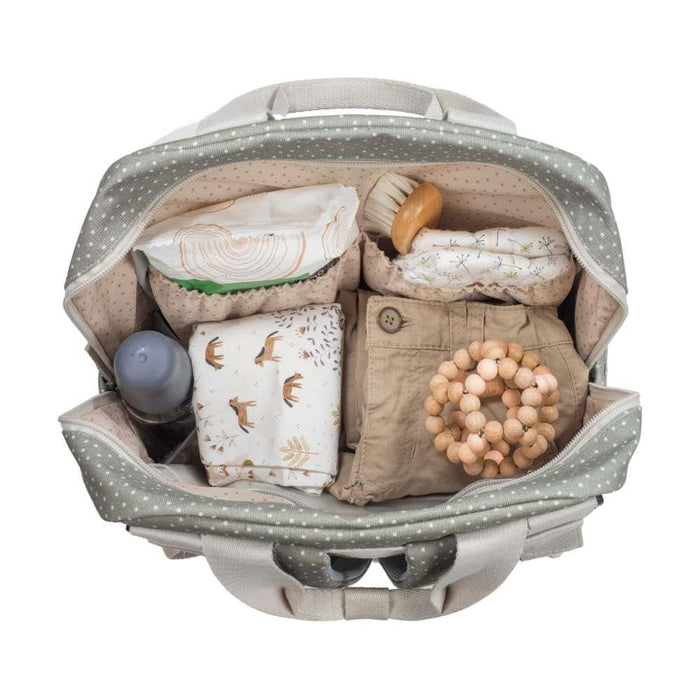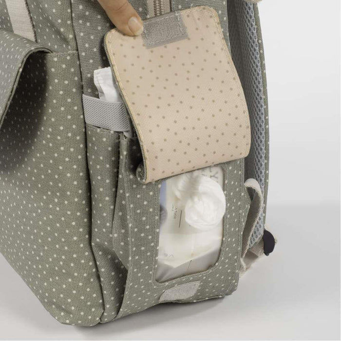 With a modern, urban design, this backpack makes it easy to carry your belongings and your baby during your outings and trips. You can wear it comfortably on your shoulders, with the two padded straps; by hand, or attached to the stroller with the adjustable, universal-sized straps, compatible with most models on the market. It features a waterproof interior compartment where you can store your baby's wet clothes and another, thermal, compartment for bottles or feeding bottles. The exterior also has two pockets, one of which holds wipes.