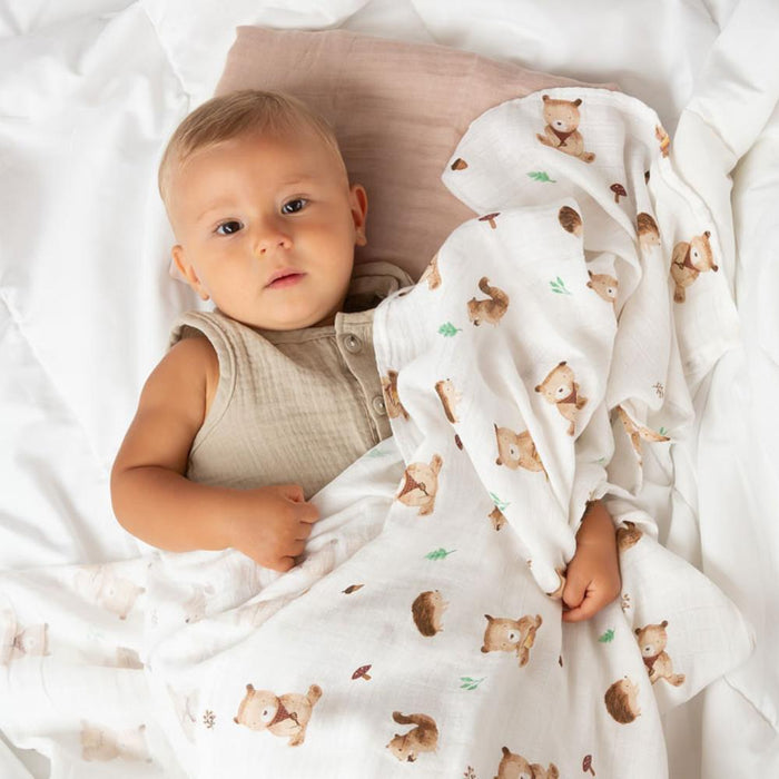 Com esta musselina macia, pode garantir que o bebé permanece aconchegado enquanto dorme. Respirável, é perfeita para embrulhar o seu filho nos primeiros meses ou para vos cobrir enquanto o amamenta.
