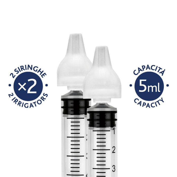 Includes 2 syringes of 5 ml each, along with 2 nasal tips made of soft material.