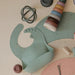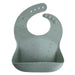 Silicone bib with practical front pocket and very comfortable fit for baby.