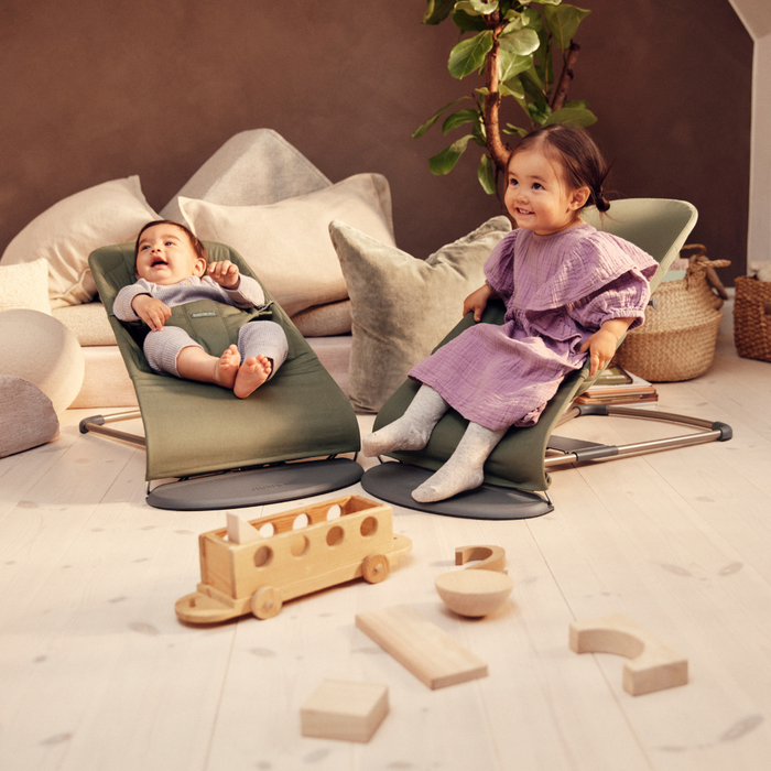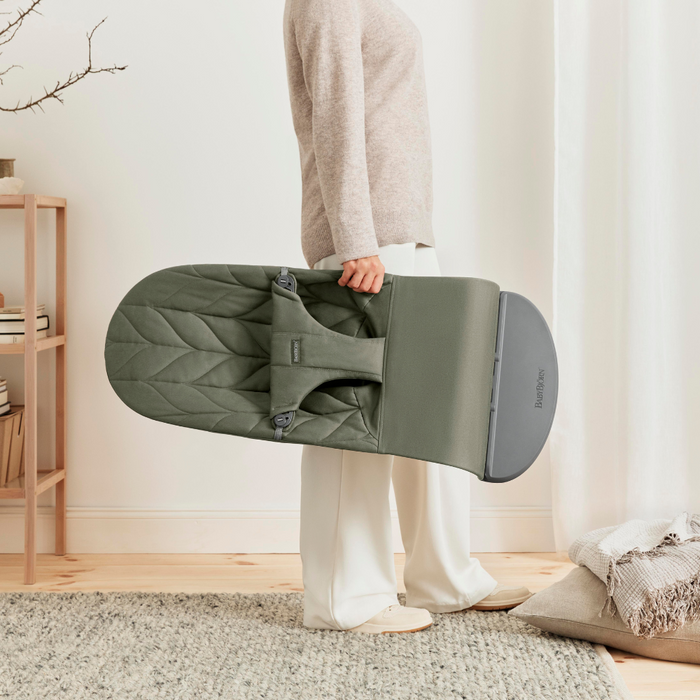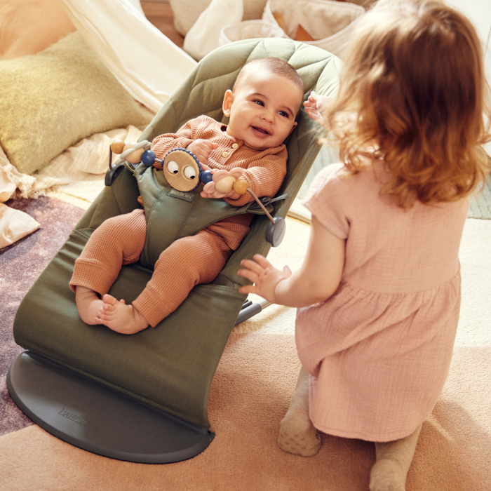The Bliss bouncer, with its soft fabric, is lightweight and very practical. Ergonomic, it offers ideal support for your baby's back, neck and head, whether they are playing or relaxing. Its natural rocking system, which does not require batteries, works only with your baby's movements and usually has a calming effect. As your child grows and becomes more independent, the bouncer can be transformed into a comfortable chair.