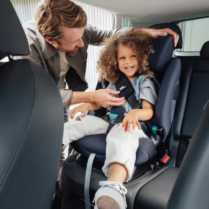 The Britax Adavansafix Pro is an upgradeable car seat, with forward-facing installation for children aged 76 to 150 cm. With three reclining points designed to ensure your child travels safely and comfortably, the seat has Isofix connectors and a Top Tether strap that must be attached to the back of the seat to provide greater stability. Thanks to the XP-PAD cushion and SecureGuard, a fourth point of contact for the car seat belt, which keeps it in an ideal position over the child's pelvic bones, reducing the impact in this area in the event of a frontal collision, your child will remain safe even when they start using the car seat with a seat belt. To switch from the five-point harness to the seat belt, simply press a button to unlock the headrest and adjust it to the required height, and store the harness (without removing the chest pads) in the back of the backrest. The Style version also has a soft (removable) reducer that guarantees maximum comfort in the seat.