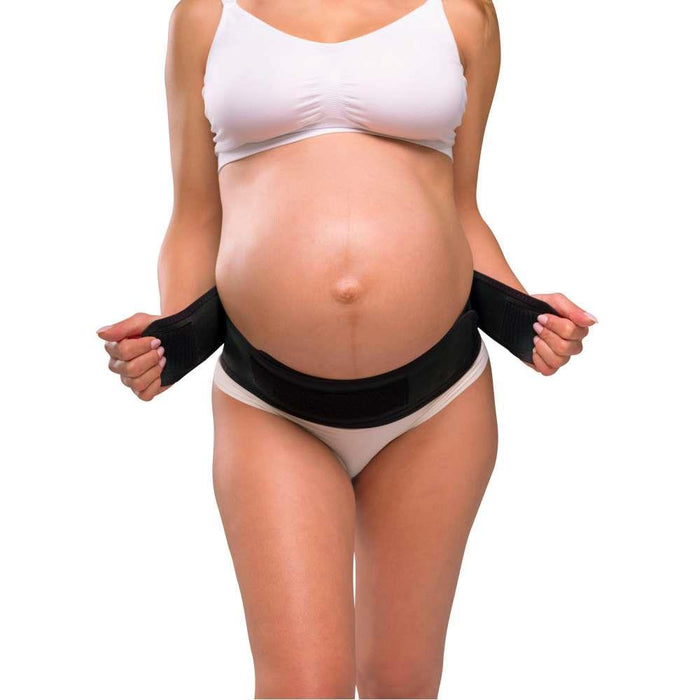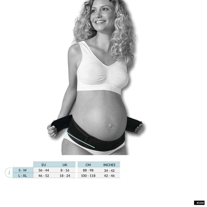 Cinto elástico e ajustável que se ajusta às necessidades da mulher, contribuindo para a redução da dor lombar associada à gravidez.