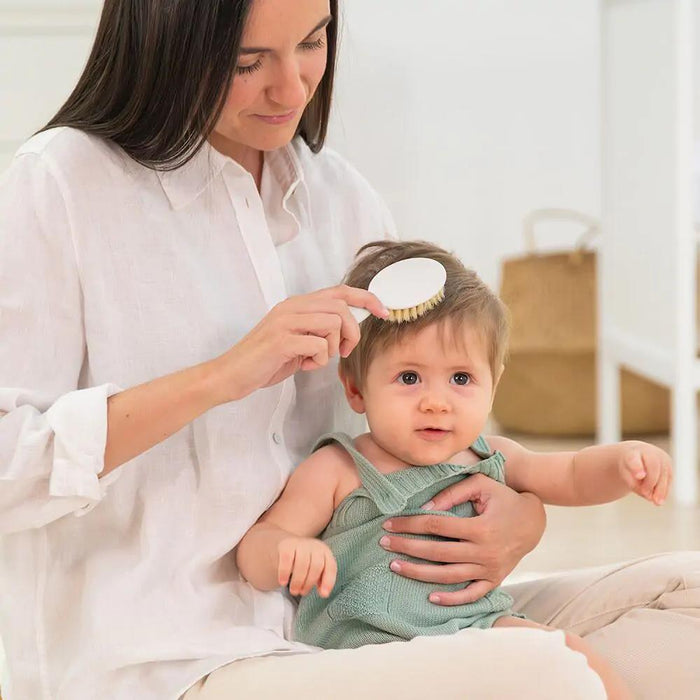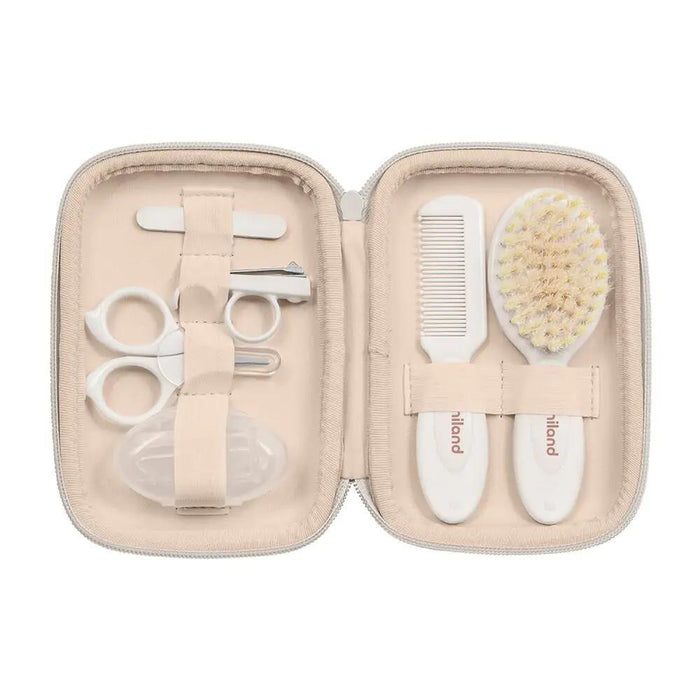 The hygiene kit includes essential items to help you take care of your baby's teeth, hair and nails during the first months of life. Inside the case, you can keep everything organized and close at hand thanks to the elasticated dividers.