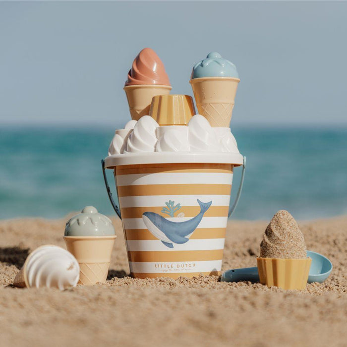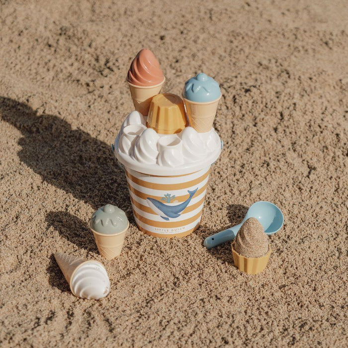 The bucket makes it easier to maintain the set, but it also helps to fetch water and - with the lid on - to hold the "ice creams" that have already been prepared.