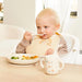 Conjunto indispensável para a introdução alimentar composto por um prato com ventosa, um copo com tampa e palhinha e uma colher. Em silicone de qualidade alimentar, macia e durável, estes três acessórios ajudam a desenvolver a autonomia e motricidade fina.
