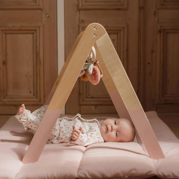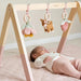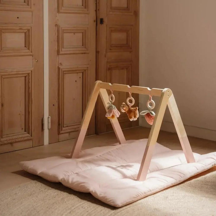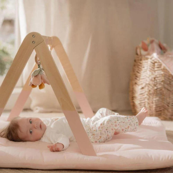 During the first few months, your baby gets used to the world outside the womb, developing basic coordination and gaining muscle control. This is the time to introduce stimuli that will help boost motor coordination, visual and auditory cognition, and their senses and emotions. The Little Dutch play gym, made of sturdy wood, includes three toys with different textures that stimulate your child's curiosity.