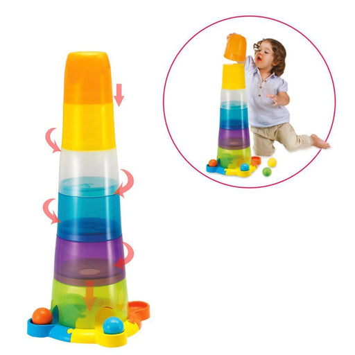 Esta torre em espiral proporciona ao seu filho momentos de muita diversão. Composto por 5 peças que a criança pode facilmente empilhar este brinquedo desafia a curiosidade e capacidade de pensar de forma lógica além de ensinar o conceito de causa e efeito.