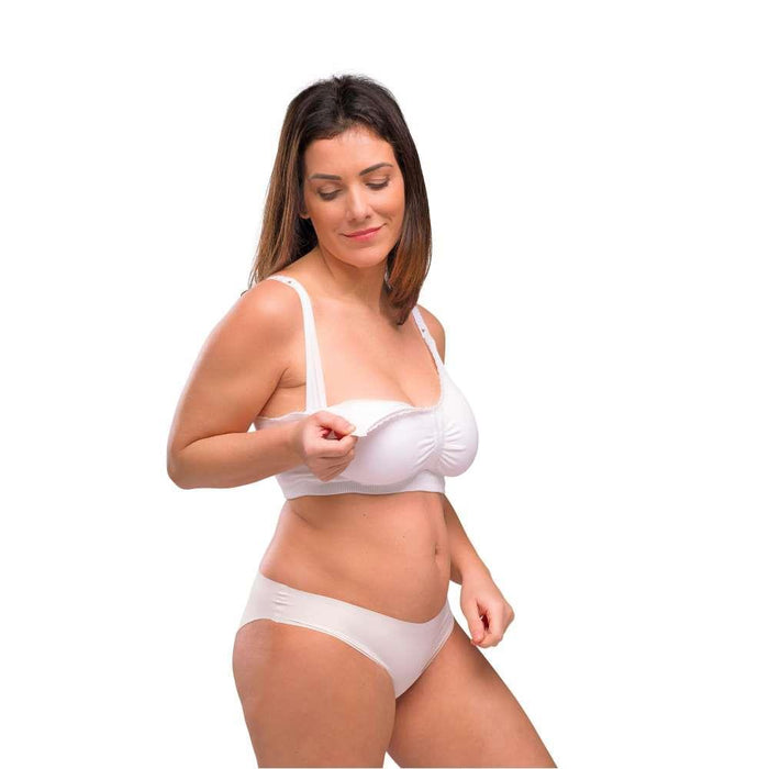 Sutiã com aros flexíveis em gel que se adaptam às alterações naturais do tamanho e forma do peito, quer durante a gravidez como na amamentação, para proporcionar um ótimo suporte, sem descurar o conforto, ajudando, assim, o leite a fluir mais facilmente graças à redução da pressão nos canais. As copas almofadadas dão suporte adicional ao peito da mãe e ajudam a ocultar discos absorventes ou eventuais fugas.